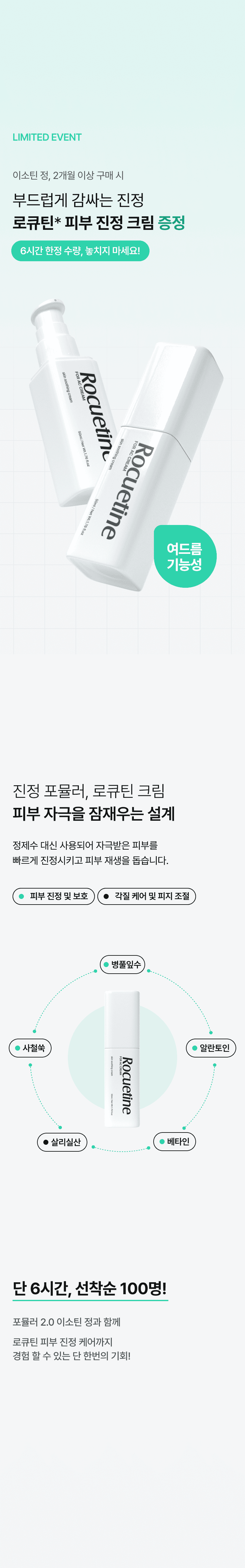 병풀잎수, 다이프로필렌글라이콜, 글리세린, 세틸알코올, 카프릴릭/카프릭트라이글리세라이드, 스테아릭애씨드, 나이아신아마이드, 1,2-헥산다이올, 폴리글리세릴-4카프레이트, 솔비탄올리베이트, 세테아릴올리베이트, 알지닌, 병풀추출물, 살리실릭애씨드, 베타인, 사철쑥추출물, 에틸헥실글리세린, 디소듐이디티에이, 알란토인, 잔탄검, 레티놀, 아데노신 |